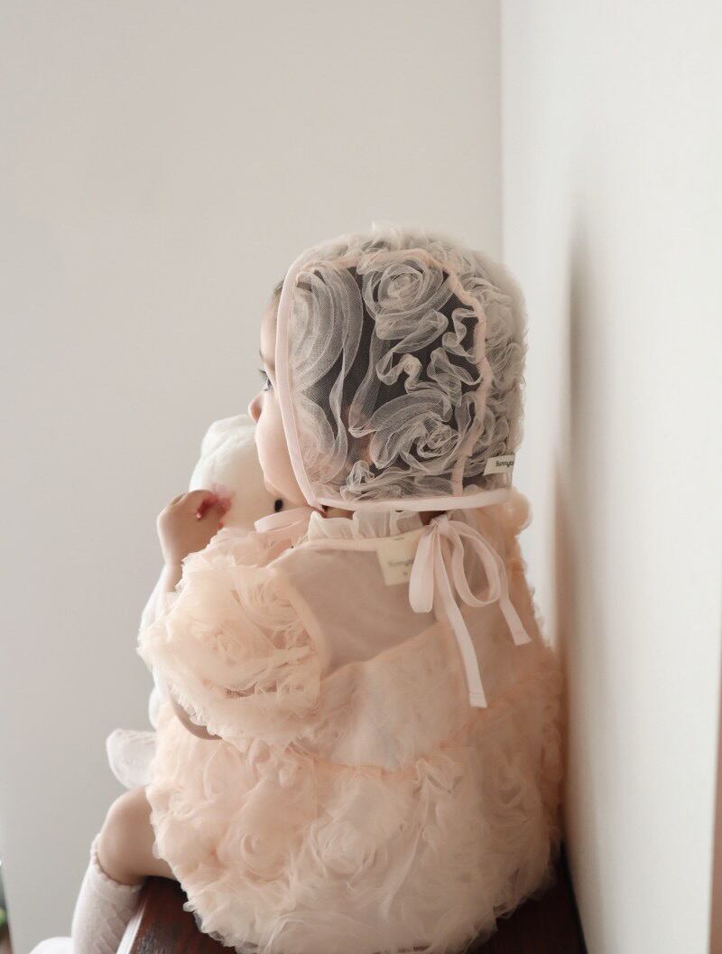 薔薇の刺繍が美しいボンネットです